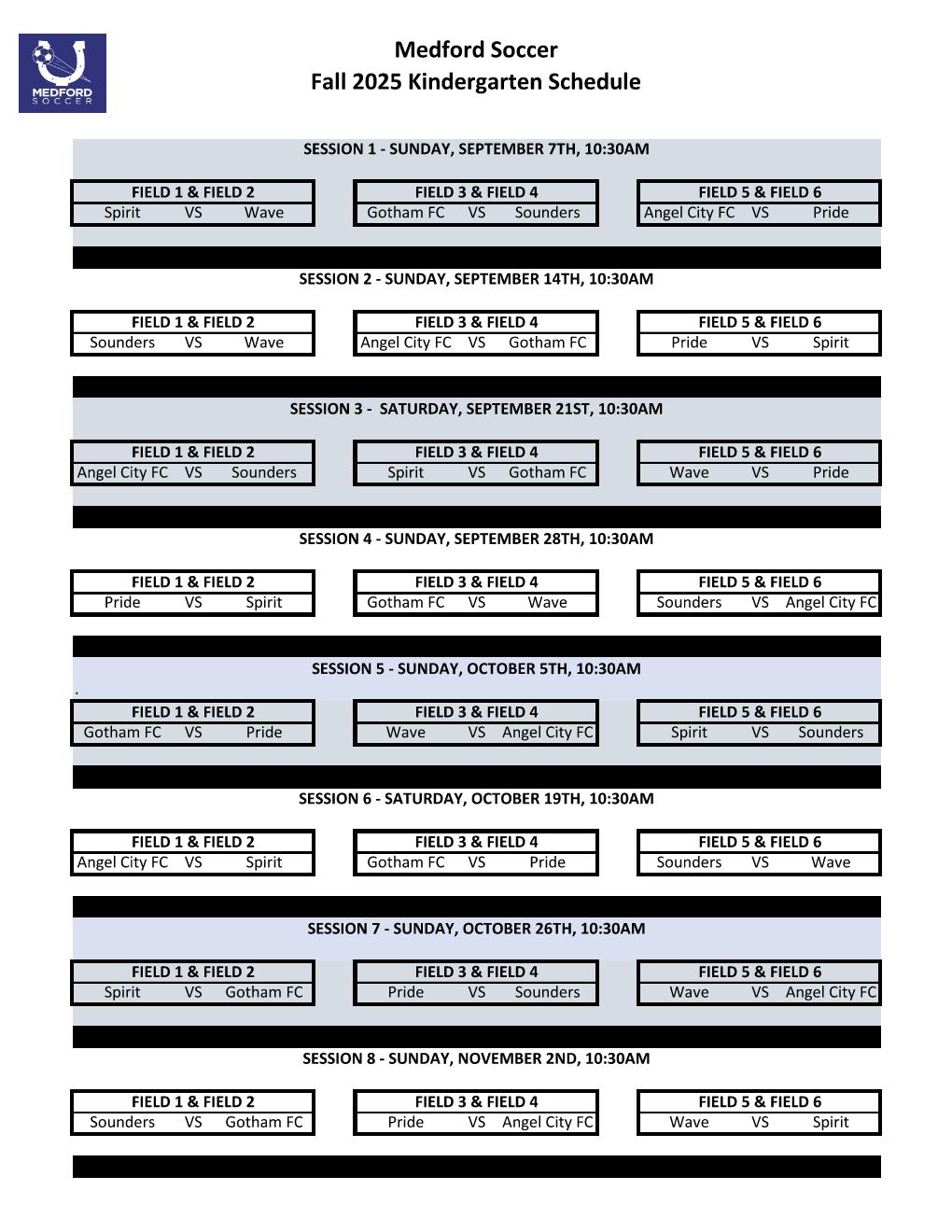 CLICK LINK FOR PDF OF SCHEDULEK plays on Sundays at 1030am-1130amAll sessions will be played behind Andrews Middle SchoolSeason will begin on Sunday, September 7thFinal session is on Sunday, November 2nd